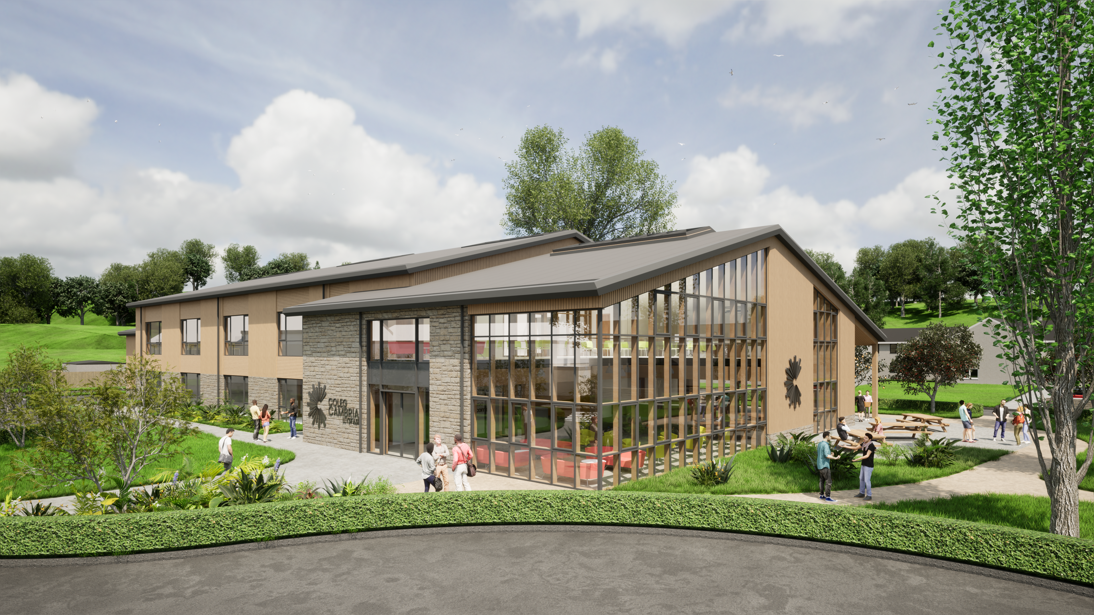 Bydd y llety newydd yn darparu 50 ystafell wely en-suite ar draws tri llawr, gyda chegin fodern, lolfa deledu, a man eistedd a rennir rhwng bob grŵp o 10 ystafell. Mae’r dyluniad hefyd yn cynnwys ardaloedd byw hygyrch pwrpasol i gefnogi dysgwyr sydd ag anableddau. Lle bynnag y bo modd, bydd deunyddiau lleol yn cael eu defnyddio, a bydd y tu allan yn ategu’r ddau adeilad sydd wedi’i gwblhau’n ddiweddar ar y safle, gyda nodweddion fel cladin pren a ffenestri dur llwyd i greu edrychiad modern.