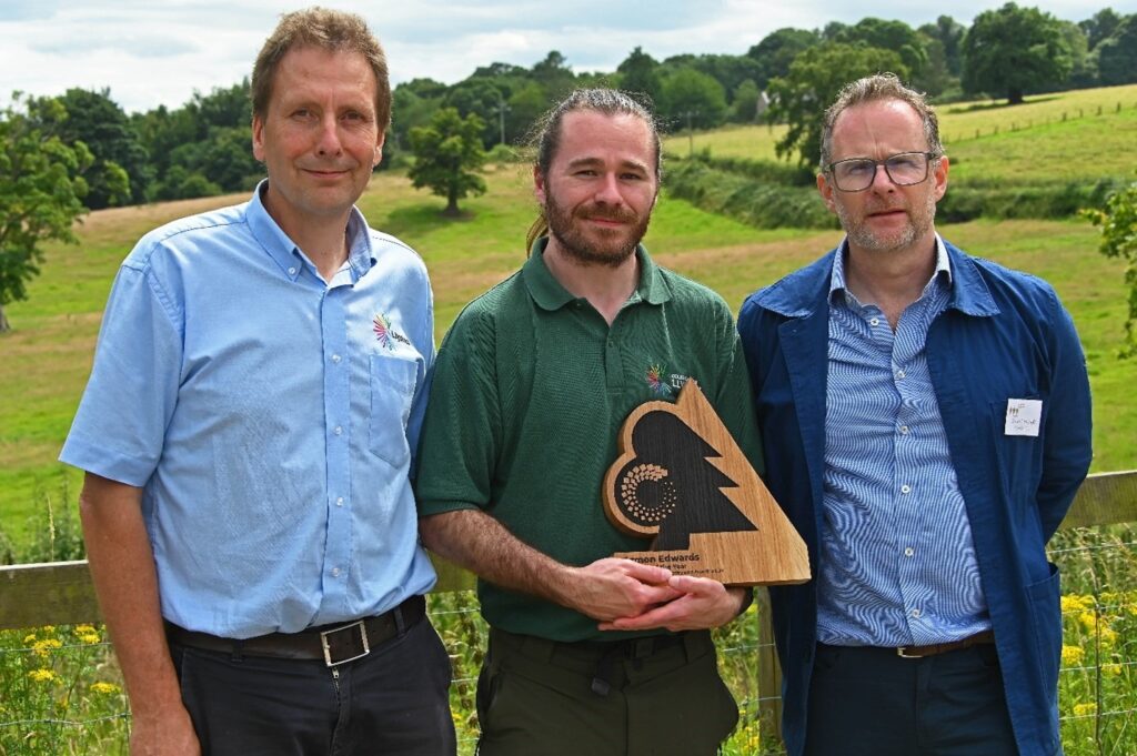 Myfyriwr Diploma Tilhill Forestry a wnaeth berfformio orau yn dathlu gyda gwobr