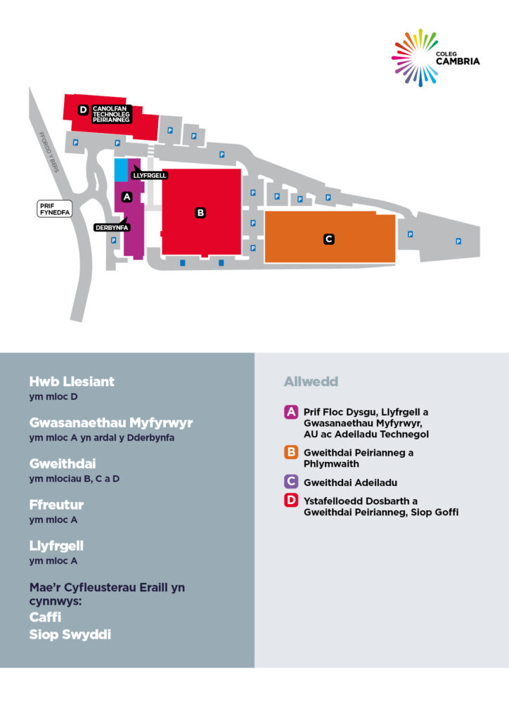 Croeso i’n safle Ffordd y Bers! Mae’r adran hon yn eich cyflwyno chi i’r prif gyfleusterau a gwasanaethau sydd wedi’u dylunio i wneud eich profiad coleg yn llyfn a chefnogol.