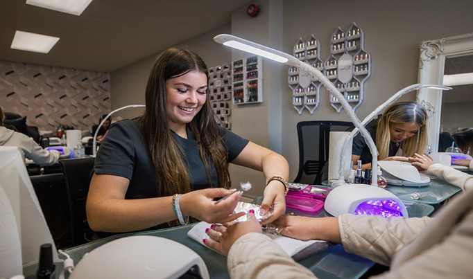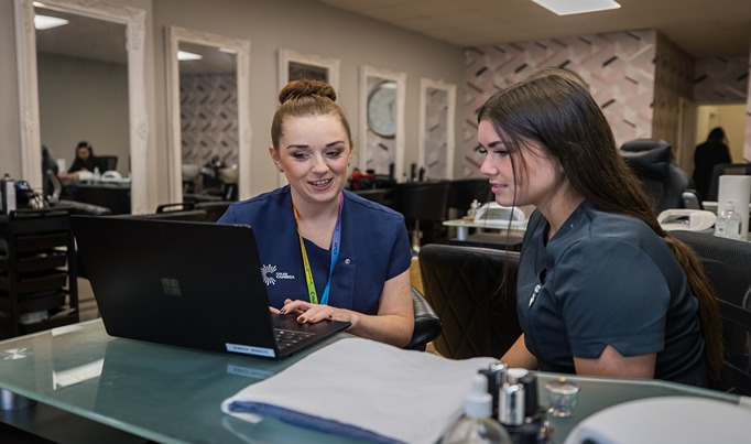 Ni waeth beth yw eich lefel sgiliau presennol, byddwn yn cynyddu eich gwybodaeth, fel y gallwch chi helpu cleientiaid i edrych (a theimlo) eu gorau glas. Byddwch yn gweithio gyda brandiau cynnyrch o’r radd flaenaf yn ein salonau masnachol o’r radd flaenaf, fel eich bod yn barod i fod y gorau yn eich gyrfa ddewisol.