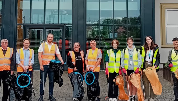 The four-strong group – Zoe Boothman, Sarah Astbury, Gracie Gee, and Andrei-Alexandru Bordea – joined the college’s Estates team in litter picking across Deeside and Deeside Sixth Form sites to mark World Clean-Up Day.