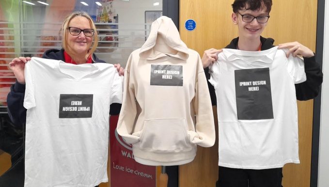 Judith said Level 3 Enterprise and Entrepreneurship learners are now gearing up for the Welsh Skills Competition for Enterprise, including Alfie Wintin, who is developing prototypes for printed hoodies and t-shirts with the support of the college’s Art and Design department.